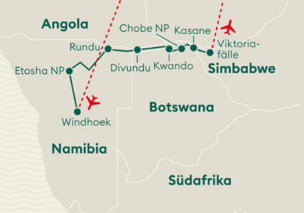 Gewaltige Canyons, einsame Berglandschaften und eines der letzten Urvölker, die die Erde zu bieten hat, prägen die bizarre, ungezähmte Schönheit. Das mit Euphorbien-Sträuchern und gewaltigen, rotgetünchten Basaltbergen gespickte Areal ist Faszination und Ursprünglichkeit zugleich. Unweit des Atlantiks erwarten Sie mit dem Brandbergmassiv die höchsten Gebirgszüge Namibias und uralte Bäume säumen von vertrockneten Flüssen durchzogene Täler. Begegnen Sie dem Vogelstrauss mit seinen neugierigen Knopfaugen und blicken Sie hinter das Geheimnis der einzigartigen Twyfelfontein-Felsgravuren.