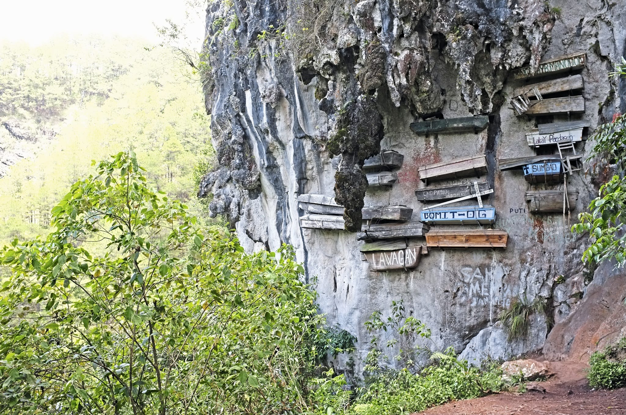 Weiterfahrt nach Sagada, bekannt für seine hängenden Särge. Die Verstorbenen werden in Kiefernholzsärgen in Höhlen oder Nischen der Kalksteinfelsen platziert. Bewundern Sie die heilige Begräbnisstätte, die Lumiang Höhle.