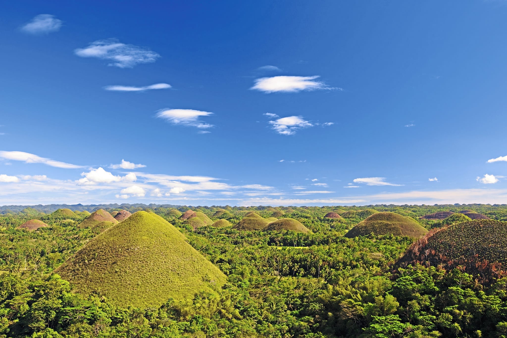 Die Insel Bohol ist Heimat besonderer Naturwunder, einzigartigen Tieren und einmaligen Stränden. Während des Ausflugs besuchen Sie die Philippine Tarsier Foundation in Corella, um den kleinsten Primaten der Welt kennenzulernen: der Tarsier. Dieses nachtaktive Tier ist erstaunlich beweglich und kann hier in seinem natürlichen Lebensraum beobachtet werden. Weiter geht es nach Baclayon, wo Sie eine jahrhundertealte Steinkirche mit angeschlossenem Museum besuchen. Halt im Mahagoniwald Bilar Man Made-Forest, ehe Sie das Highlight von Bohol erreichen: die Chocolate Hills. Diese geologische Besonderheit ist einzigartig - in der Ferne erscheinen Berge wie Schokoladentropfen, deren Gras im Sommer tiefbraun wird. Der Ausflug endet mit einer Flussfahrt auf dem Loboc Fluss.